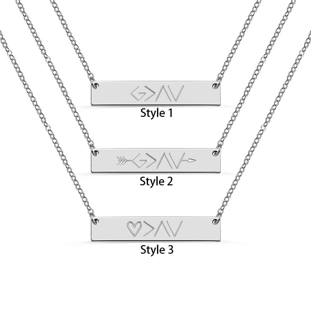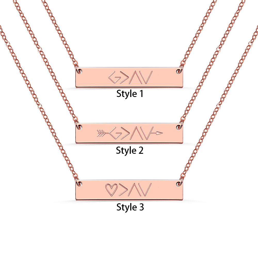 If you believe in God, then you must have heard of the saying "God is greater than the highs and lows", our necklace transfer this sentence into a series of symbols, engraving your belief in God on the necklace, close to your heart! God is in our heart, and bestow us strength when confronting with hard times! And we have free engraving on the back of the bar, you can engraving your belief or the motto you love, make the bar necklace one-of-a-kind. It's the perfect necklace for those who believe in God!